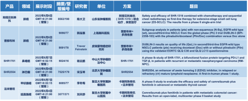 2022 ASCO年会另有5款凯发k8医药上市前抗肿瘤创新药的相关研究被接收为壁报,包括SHR-1316、普那布林、法米替尼、SHR-1701和SHR2554,他们的单药或联合方案相关7项研究被接收为壁报,覆盖肺癌、鼻咽癌、淋巴瘤、甲状腺癌和结直肠癌等领域。